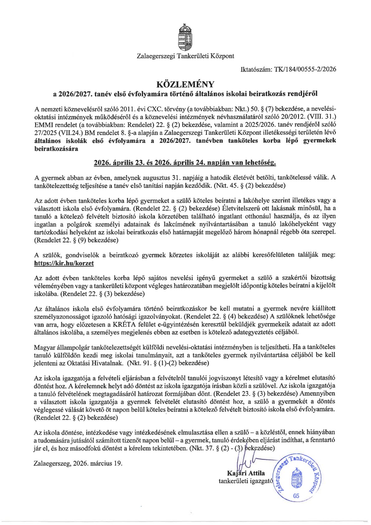 Beiratkozás Általános Iskolába